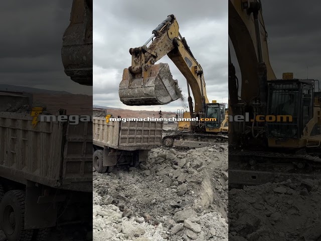 Cat 390D Excavator Loading Trucks