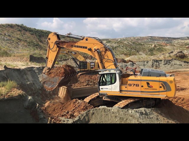 Caterpillar 375 and Excavators Loading Trucks