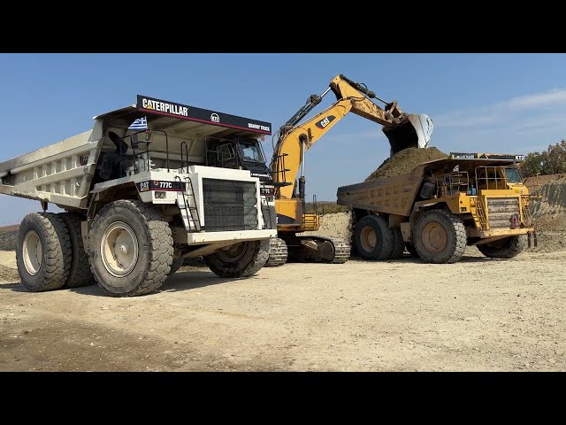 Cat 385C Excavator Loads Cat 777C Dump Trucks