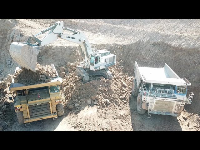 Liebherr 984 Excavator Loading Caterpillar 777C Dumpers