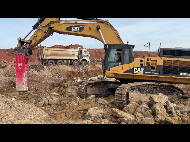 Caterpillar 365C with Hydraulic Hammer - Mining Rocks
