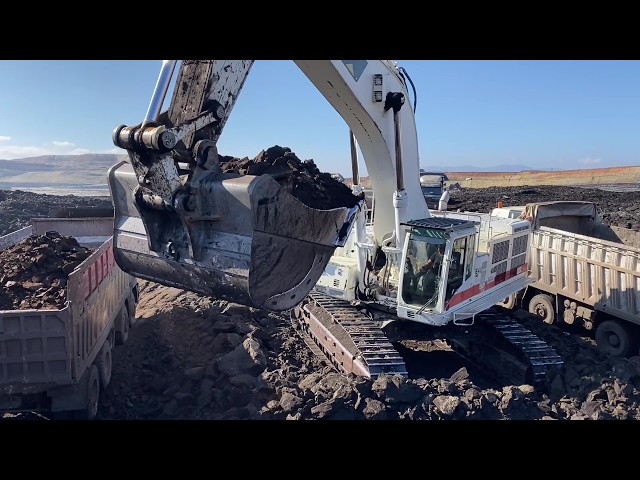 Excavator Loading Coal on Trucks – Mining Operation